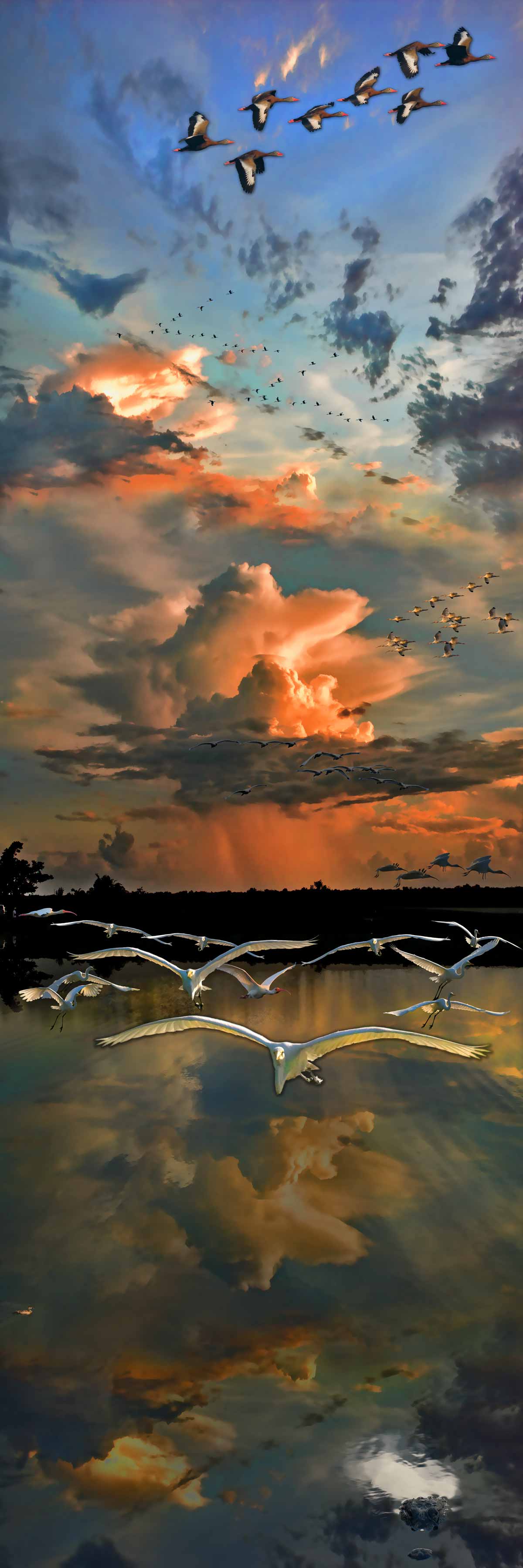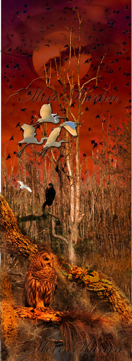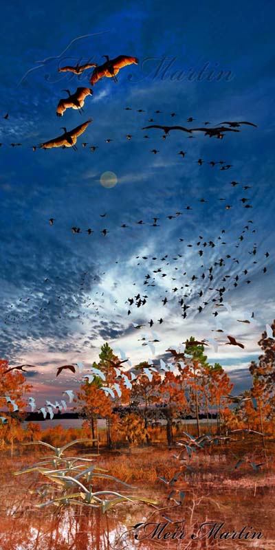 With each stroke of his imaginative brush, Martin brings to life a captivating tableau where these majestic birds take flight, their presence emanating a mesmerizing aura.